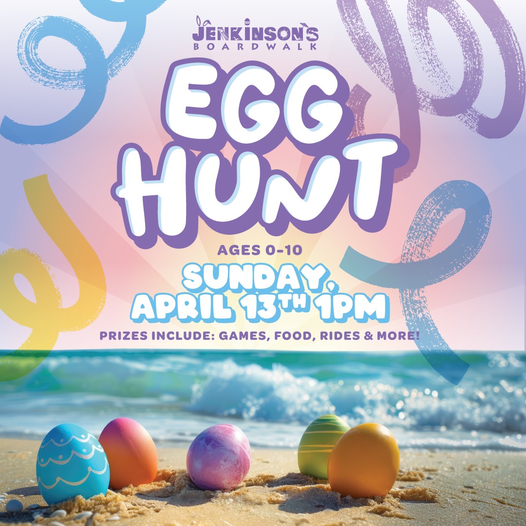 Join us for the Jenkinson’s Boardwalk Annual Easter Egg Hunt on Sunday, April 13th at 1pm! Known as one of the best Egg Hunts at the Jersey Shore, prizes include games, ride & food coupons, and so much more!