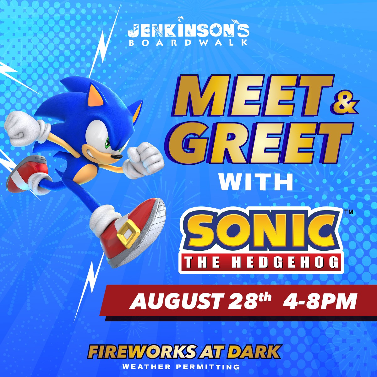 Get ready to meet the one and only Sonic the Hedgehog at Jenkinson’s Boardwalk! Join us at the South Beach Stage, located on the beach in front of the amusement rides, for an exciting Meet & Greet with the iconic blue speedster.