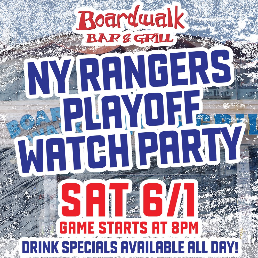 Let’s Go Rangers! Join us at the Boardwalk Bar and Grill again for the best New York Rangers watch party at the Jersey Shore on Saturday, June 1st at 8:00pm. Cheer on the New York Rangers as they take on the Florida Panthers in a pivotal Game 6 of the Eastern Conference Finals!