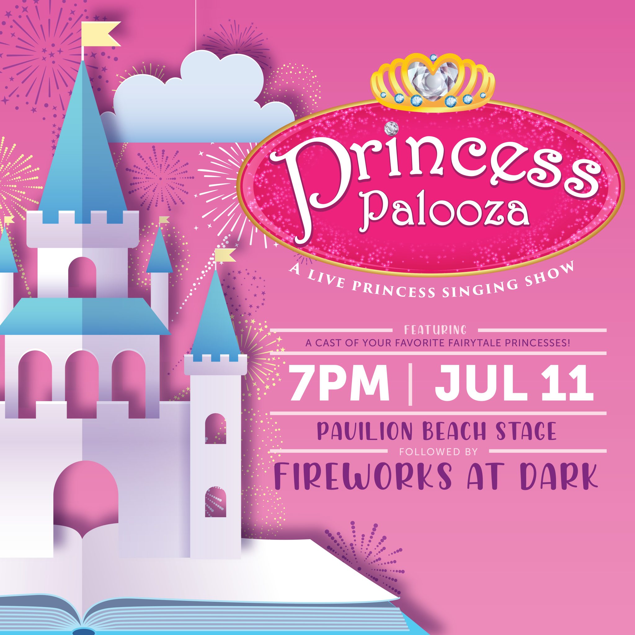 The princesses are heading back to the beach for 3 Princess Palooza shows this summer! Join us in the sand for a princess singing show featuring a cast of your favorite fairytale princesses.