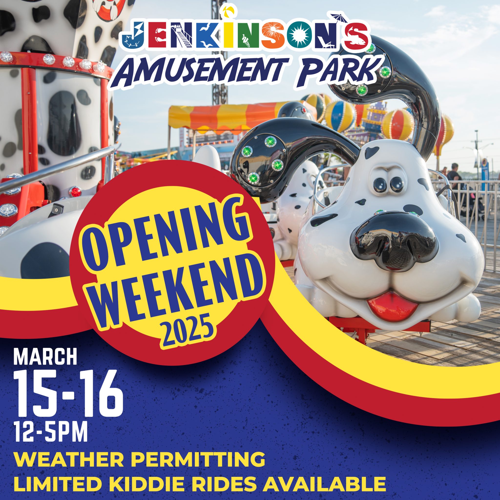 Jenkinson's Boardwalk 300 Ocean Ave, Pt. Pleasant Beach, NJ, United StatesKick off the season with us at the Jenkinson's Amusement Park! Join us on Saturday, March 15, and Sunday, March 16 from 12:00 PM to 5:00 PM for our exciting Opening Weekend. While we’re starting the fun early with limited kiddie rides available, it’s the perfect chance to enjoy the start of springtime at the boardwalk.