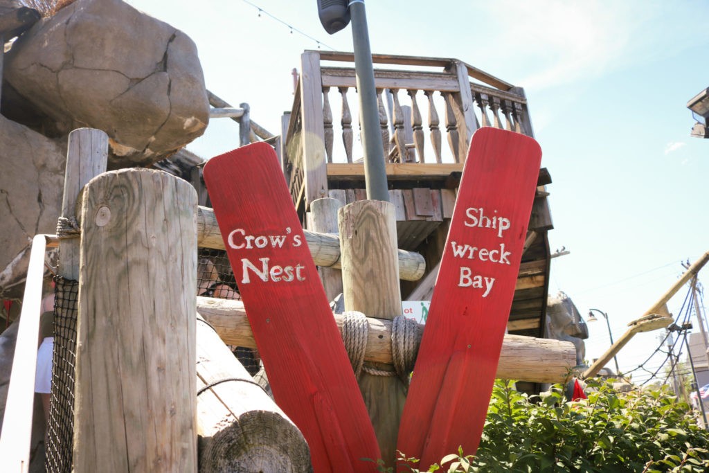 Castaway Cove where the Wheeler family became shipwrecked and used remains from the ship to design two unique adventures. Choose from the shipwreck bay course which takes you through caves, and past thunderous waterfalls, or head to the Crow’s nest, which travels to the top of the cove with amazing aerial views of waterfalls and plant life.
