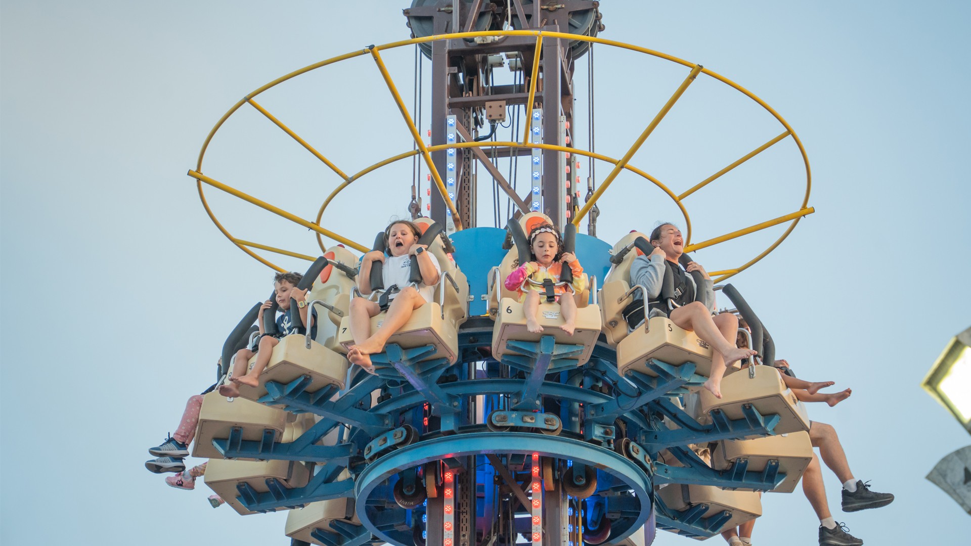 Shiver me timbers! Standing over 50 feet tall, the Pirate’s Plunge is the tallest ride in the Amusement Park. This thrill ride rotates 360° and offers amazing views.
